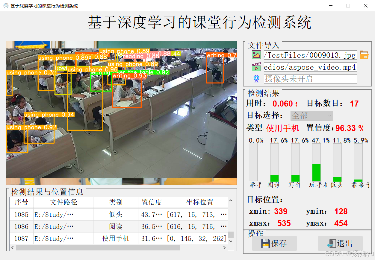 准确的行为分析结果:系统提供的行为检测结果准确可靠,并带有置信度评估,以便教师判断结果的可信度。