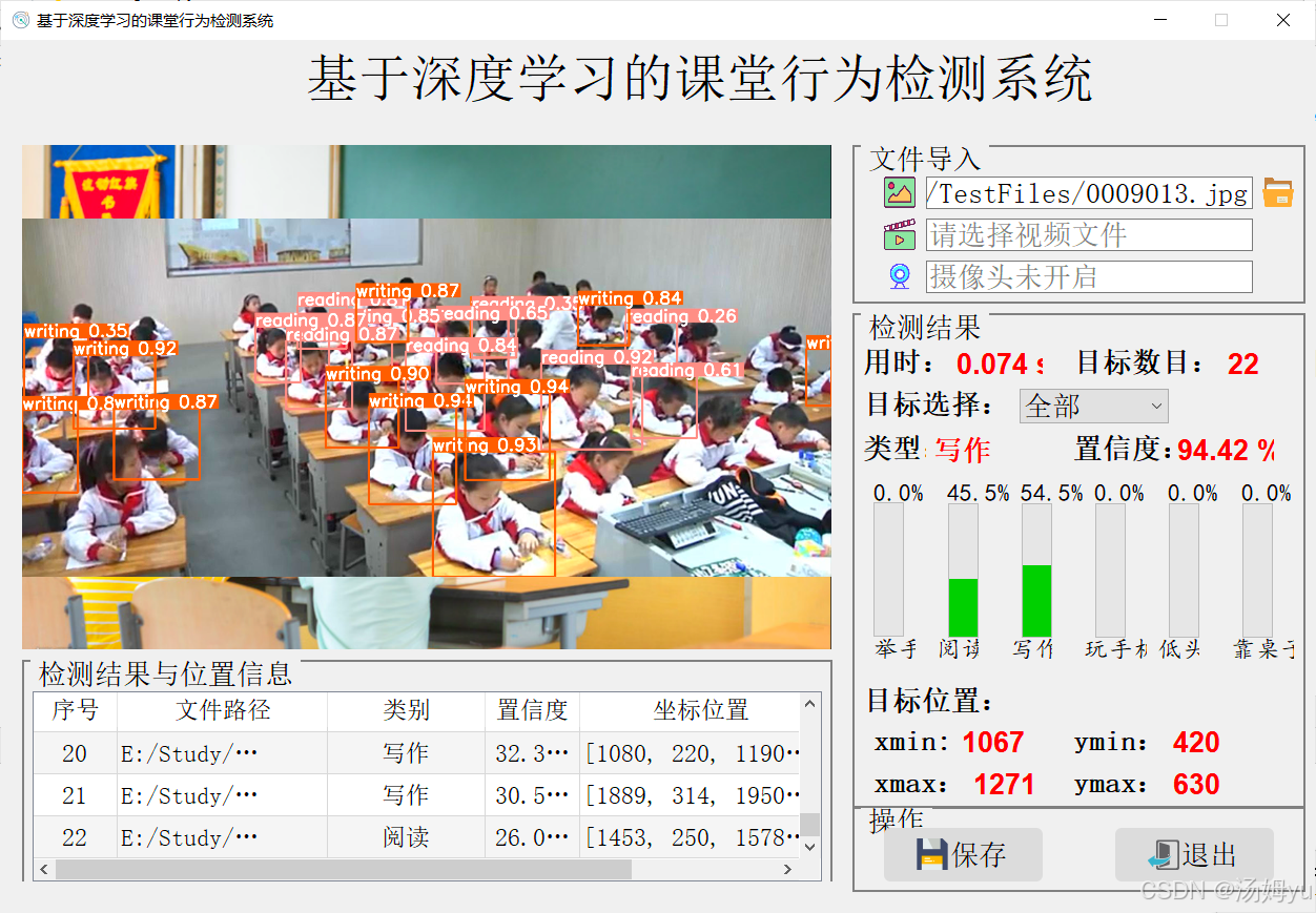 先进的深度学习技术应用:采用前沿的 YoLov8 目标检测算法,保证了行为检测的准确性和效率,能够适应复杂的课堂环境。