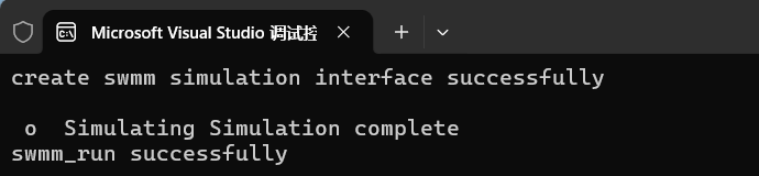 按照上面内容下载软件,设置环境变量成功后,可以双击运行swmmTest.exe,如果出现如下结果则说明开发平台可用。