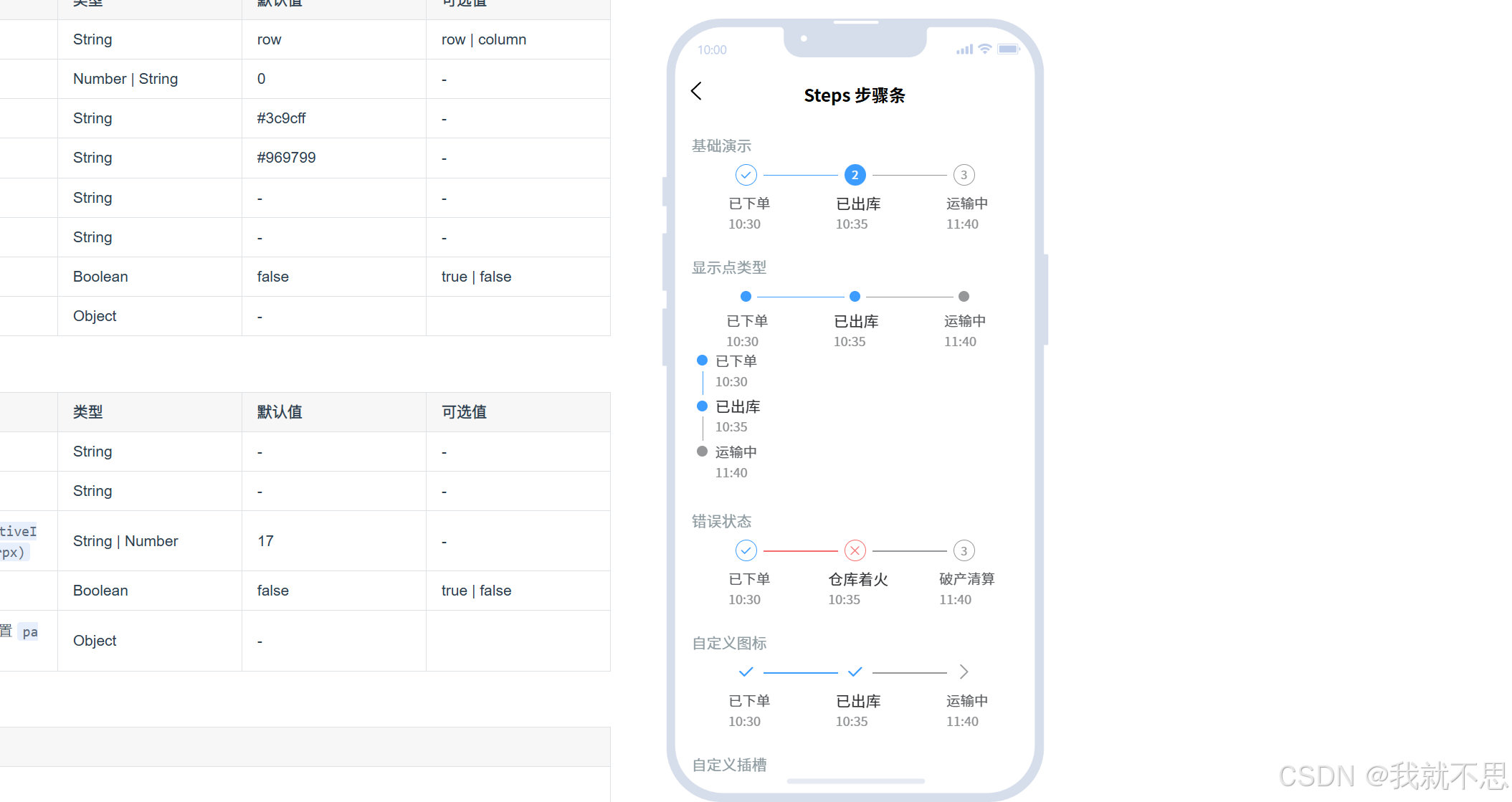 项目使用的是u-ui,想着用uv-steps可以实现,但是uv-steps有自己的数据结构,想着自定义结构的,但是还是很多限制的!还是自己写吧!