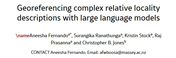 地理参照文本文件通常采用两种方法:一是基于地名录的方法,通过地名分配地理坐标;二是通过语言建模方法,将文本术语与地理位置相关联。然而,许多位置描述通过空间关系来相对地指定方位,这使得仅依赖地名或地理指示词进行地理编码往往不够精确。这一问题在生物标本采集记录中尤为常见------在使用全球定位系统(GPS)之前的记录,其位置常以叙述性文字而非坐标形式记载。尽管准确的地理参照对生物多样性研究至关重要,但该过程仍依赖大量人工操作,因此迫切需要自动化地理参照解决方案。
