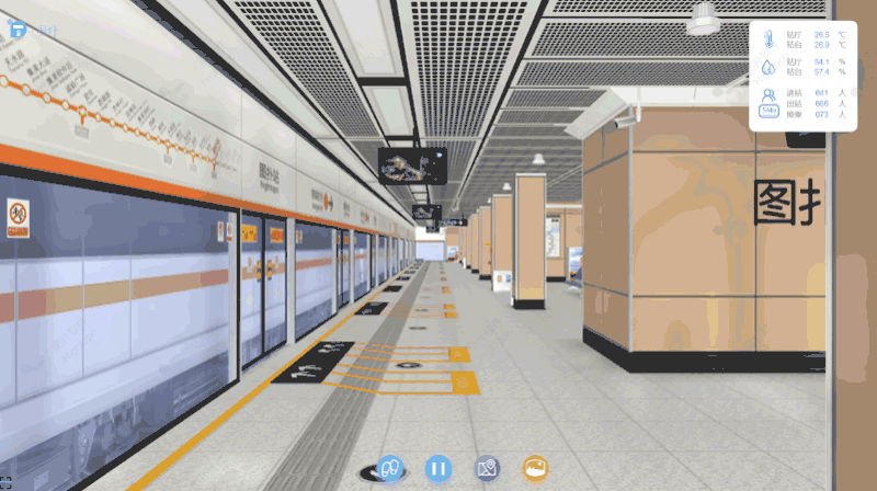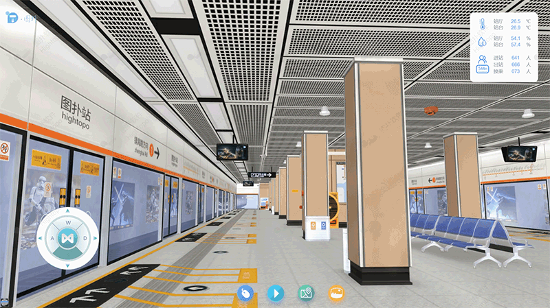 地铁站三维场景的构建遵循 "精准还原、高效渲染" 的原则。首先,以地铁站 CAD 设计图纸、现场实拍照片、设备技术参数文件为基础素材,在专业建模软件中进行精细化建模。建模过程中采用多边形简化、纹理压缩、细节层次(LOD)优化等技术,在保证模型精度的前提下降低资源占用。完成建模后,将模型导出为 HT 引擎支持的格式,导入至 HT for Web 平台,最终构建出 1:1 比例还原的地铁站三维虚拟场景,实现对站厅、站台、设备布局等物理空间的数字化复现。