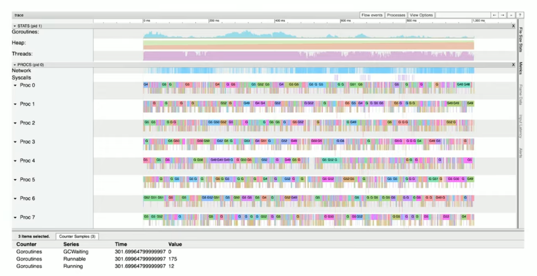 与采样式的 pprof 不同,Tracer 记录了运行时调度器的每一个动作: