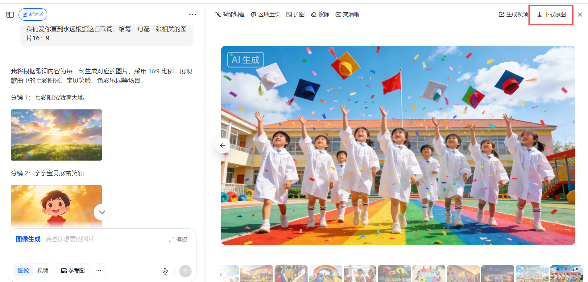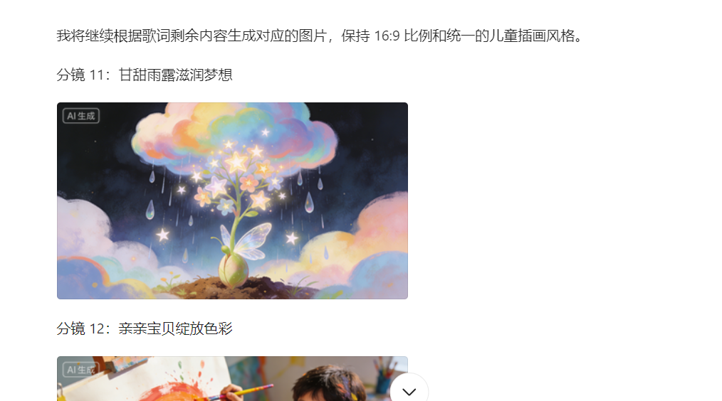它飞快生成了每句歌词对应的图片,太神奇了!!!
