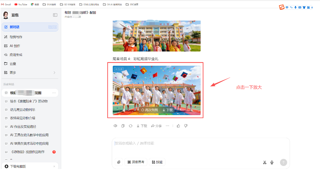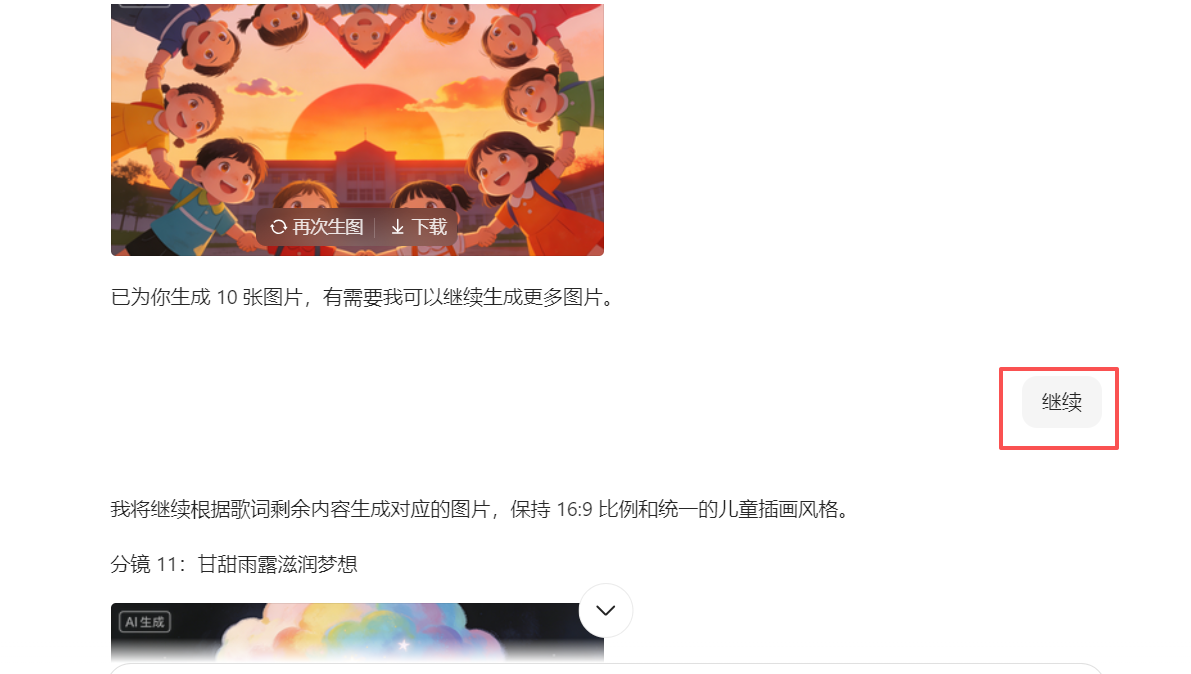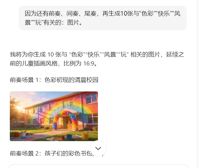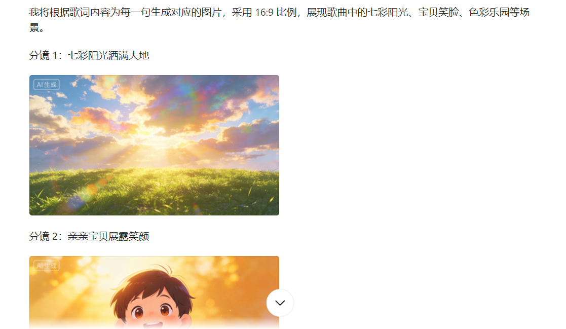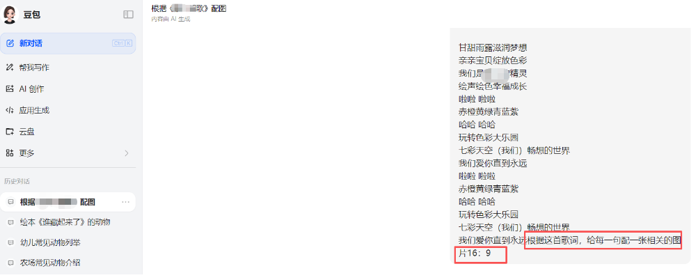 所以我想试试豆包是否可以根据歌词生成对应的图片(匹配内容),便于幼儿记忆和模唱。