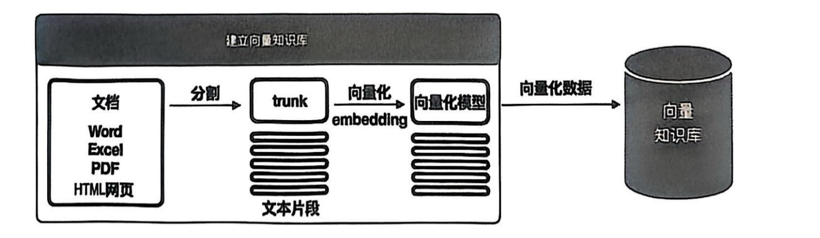 这是将原始资料处理成可供高效检索的知识库的过程,步骤如图所示: