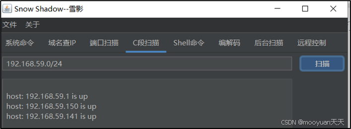 使用工具查看存活网段,如下所示由于攻击机kali为192.168.59.141,本机为192.168.59.1,故而靶机为192.168.59.150。
