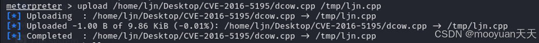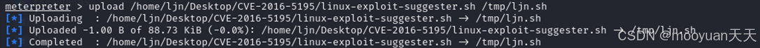 upload /home/ljn/Desktop/CVE-2016-5195/linux-exploit-suggester.sh /tmp/ljn.sh