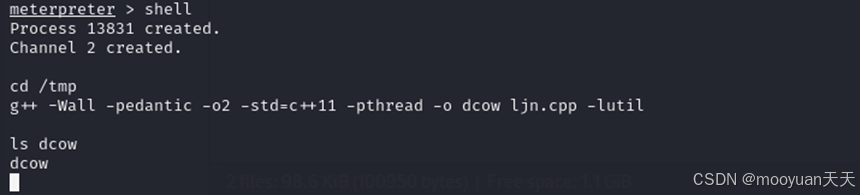 进入shell命令行,编译漏洞文件dcow,如下所示