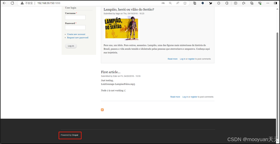 访问1898端口服务, 在该网页的最后部分发现了一个东西:powered by Drupal。