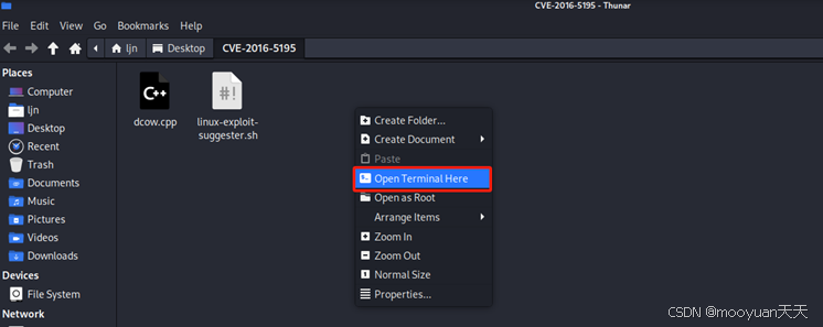 在kali桌面将PoC文件夹放入到桌面,并进入文件夹,右键打开一个终端,如下图所示