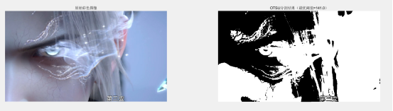 - OTSU 算法自动计算最优阈值(本例为 141.0),无需手动调整;