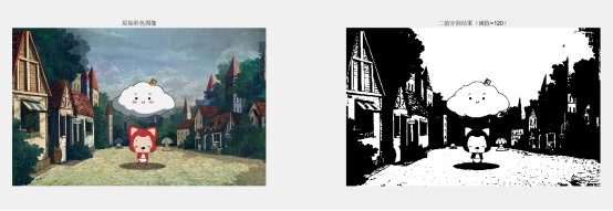 读取彩色图像→转换为灰度图→自定义灰度阈值→二值分割→对比原图与分割结果。