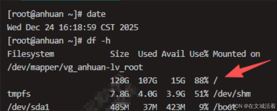root@anhuan \~\]# df -h / Filesystem Size Used Avail Use% Mounted on /dev/mapper/vg_anhuan-lv_root 128G 107G 15G 88% / \[root@anhuan \~\]# du -sh /u01/app/oracle/diag/tnslsnr/anhuan/listener 39G /u01/app/oracle/diag/tnslsnr/anhuan/listener  ## 2、清理:ALERT+listener.log ### 2.1宿主机执行清理命令 --保留 90 天(分钟:129600) ionice -c3 nice -n 19 su - oracle -c 'adrci exec=" set homepath diag/tnslsnr/anhuan/listener; purge -age 129600 -type ALERT; "' --保留 60 天(分钟:86400) ionice -c3 nice -n 19 su - oracle -c 'adrci exec=" set homepath diag/tnslsnr/anhuan/listener; purge -age 86400 -type ALERT; "' ### 2.2清理ALERT验收(只读): df -h / du -sh /u01/app/oracle/diag/tnslsnr/anhuan/listener su - oracle -c "/u01/app/oracle/product/11.2.0/dbhome_1/bin/lsnrctl status" ## 3、清理listener.log ### 3.1保留最近 5000 行证据,然后清空: sudo ionice -c3 nice -n 19 sh -c ' f=/u01/app/oracle/diag/tnslsnr/anhuan/listener/trace/listener.log tail -n 5000 "$f" \> "${f}.tail_$(date +%F_%H%M%S)" : \> "$f" ' ### 3.2清理listener.log验收(只读) ls -lh /u01/app/oracle/diag/tnslsnr/anhuan/listener/trace/listener.log df -h / su - oracle -c "/u01/app/oracle/product/11.2.0/dbhome_1/bin/lsnrctl status" ## 4、清理后:清理不会影响系统稳定运行。