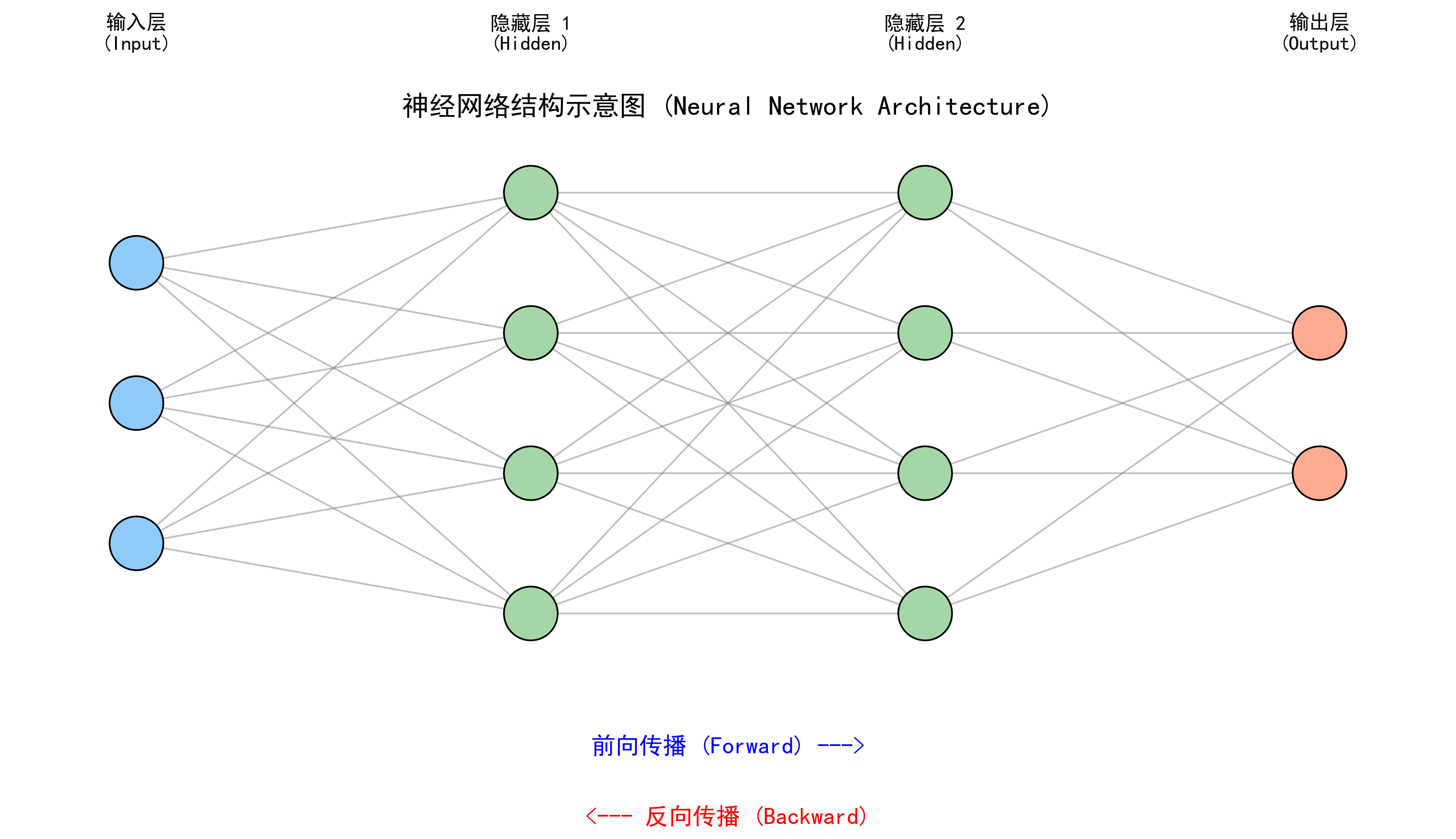- 🔵 蓝色节点 (输入层):接收外部信息(比如图片的像素)。