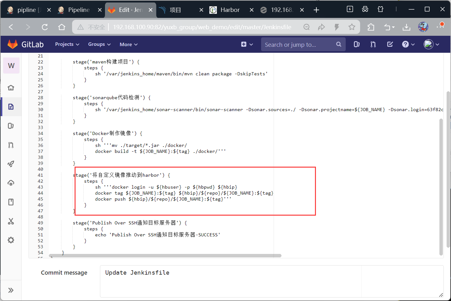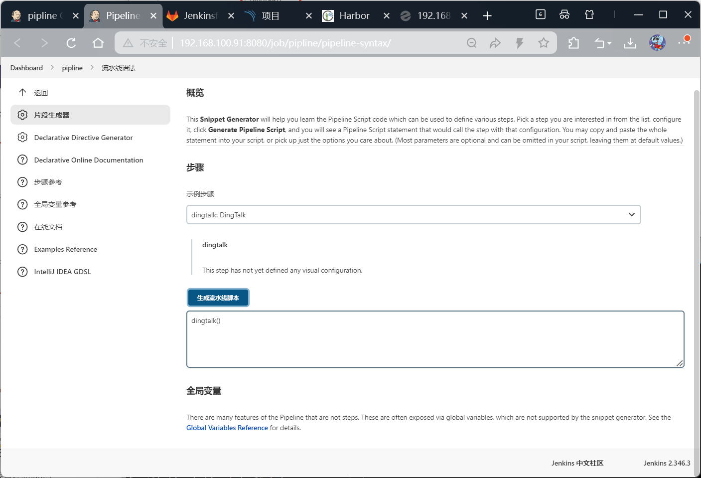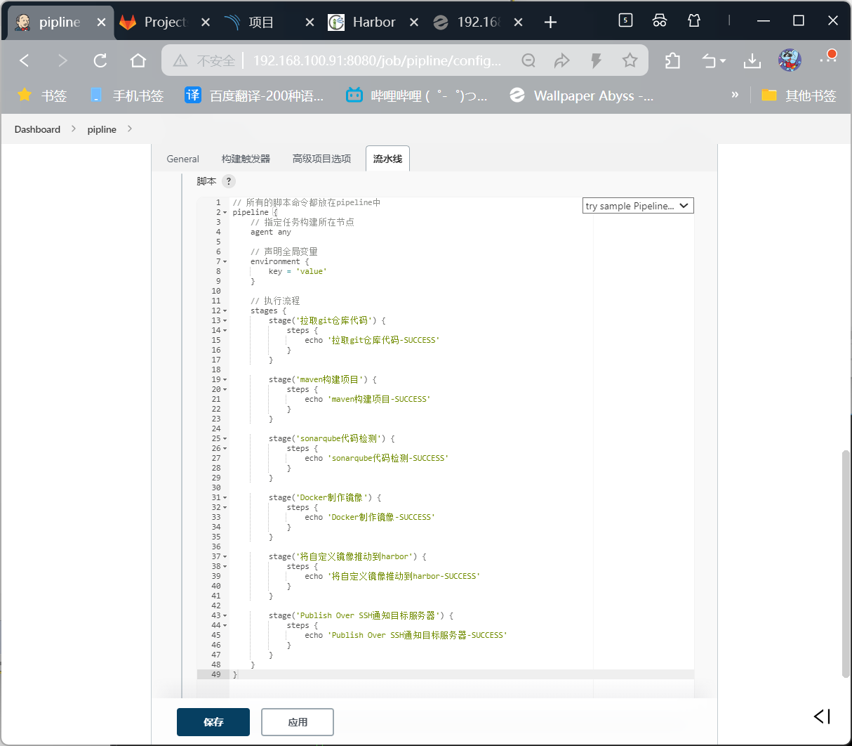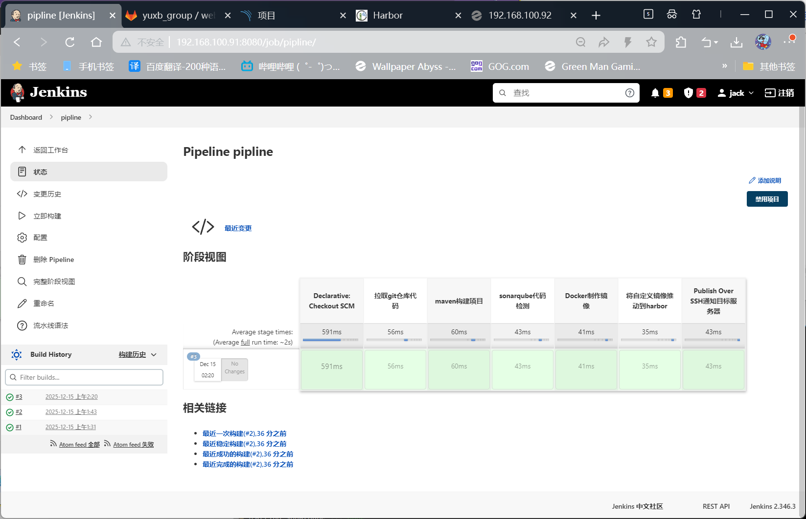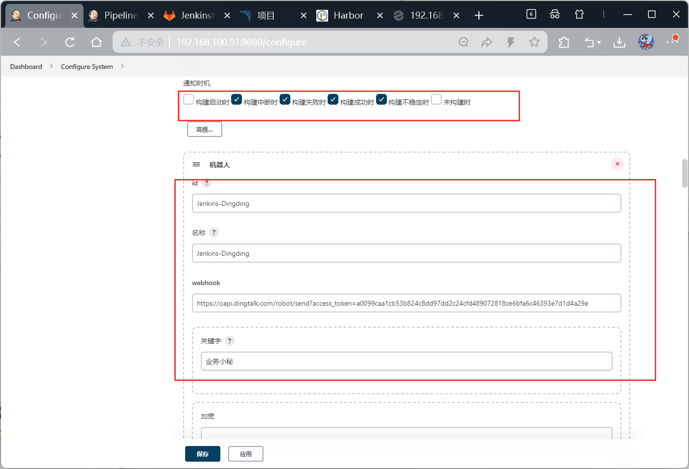 按照原来构建项目的流程,使用pipeline流水线进行分阶段的管理构建,并且构建后钉钉会 通知消息