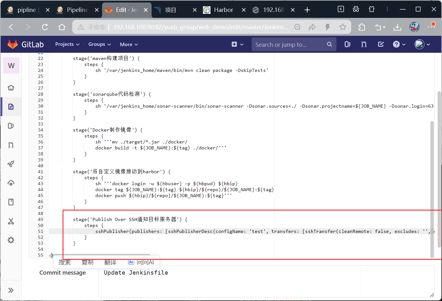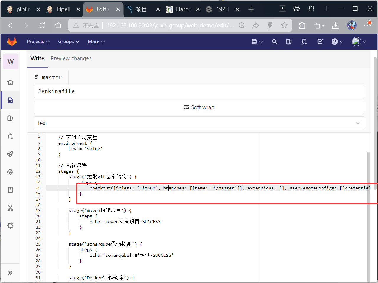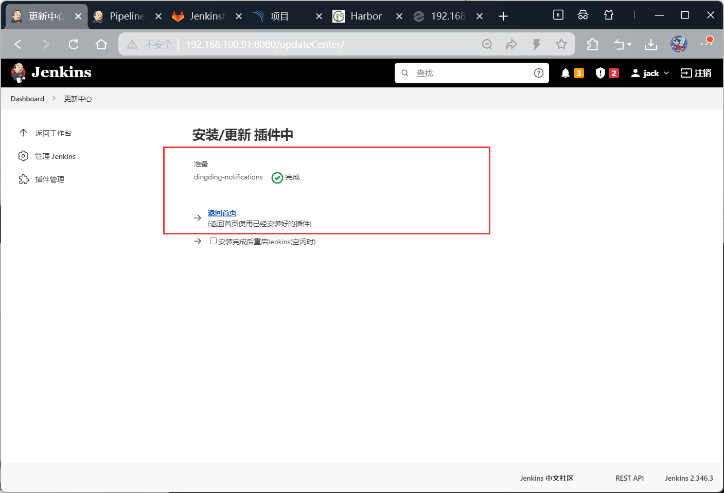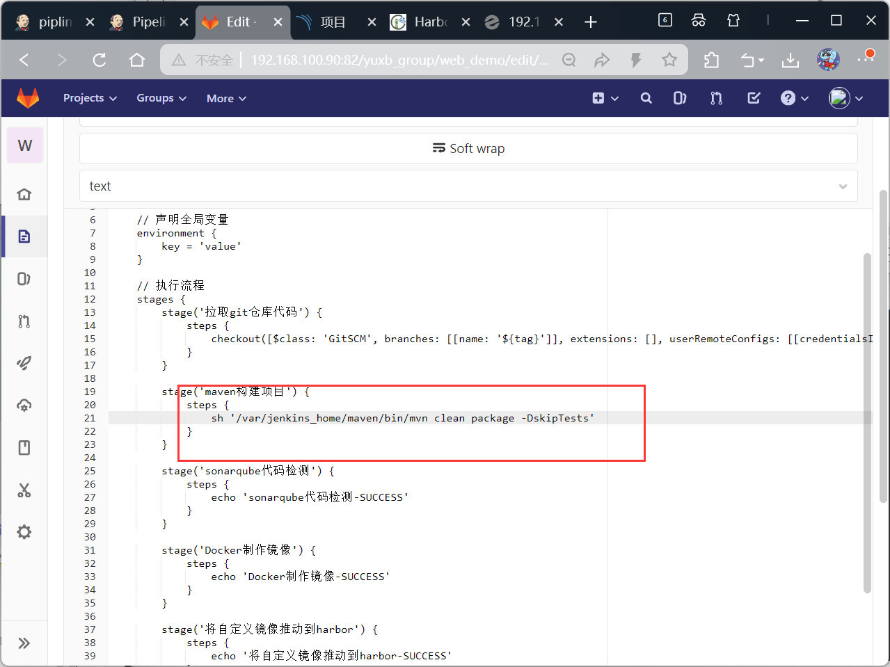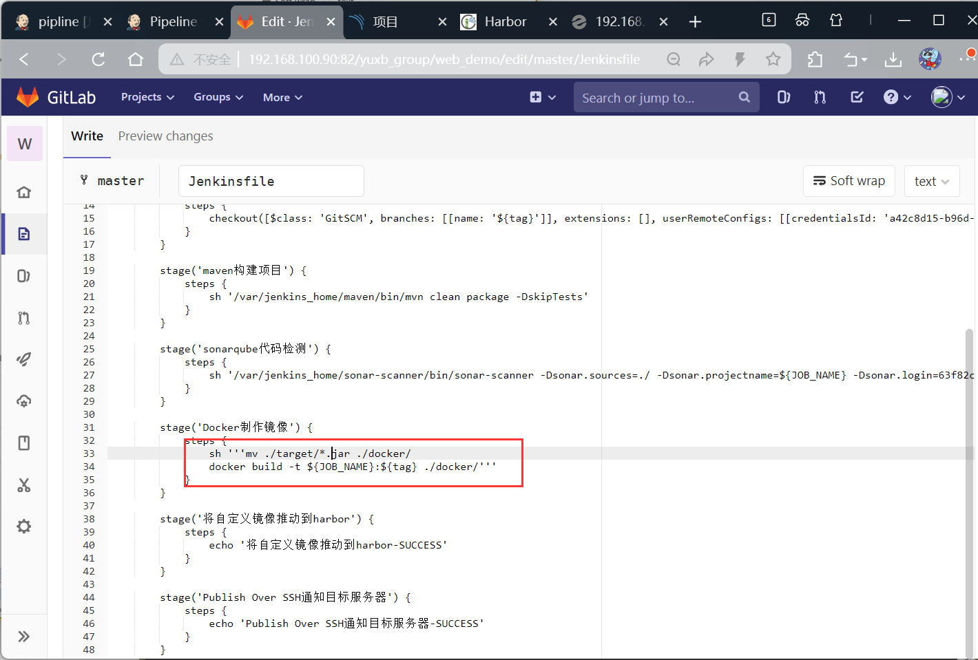 按照原来构建项目的流程,使用pipeline流水线进行分阶段的管理构建,并且构建后钉钉会 通知消息