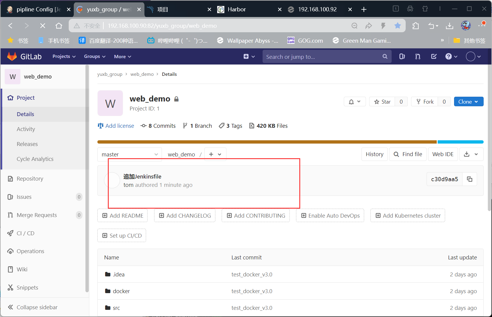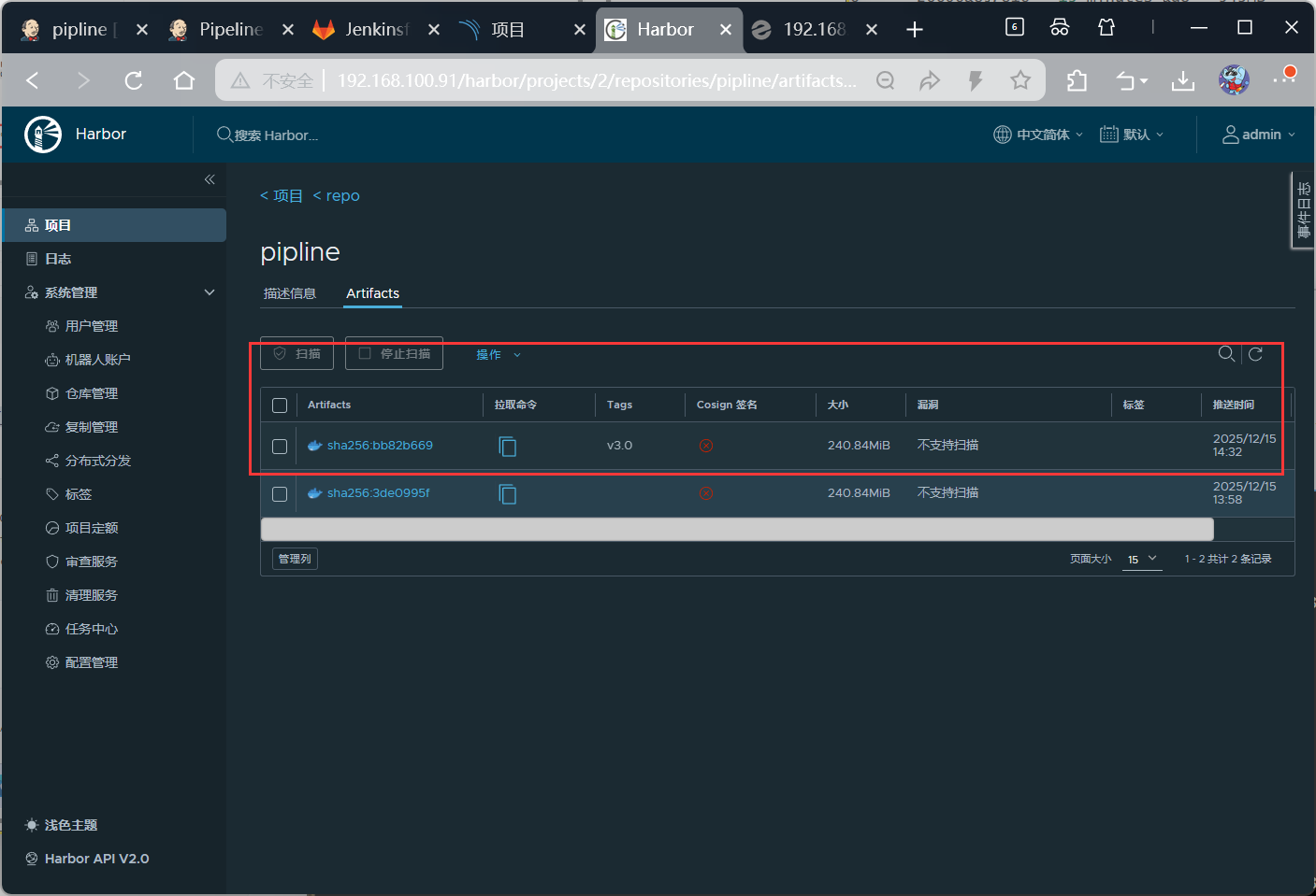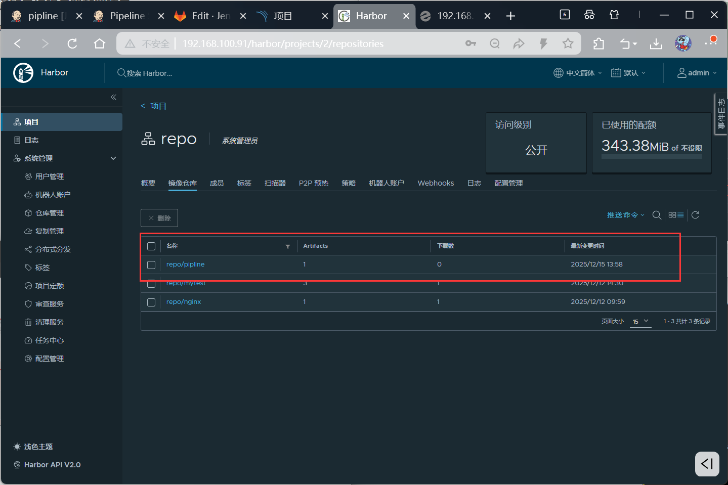192.168.100.91/repo/pipline v3.0 d77d0277189d 38 seconds ago 543MB