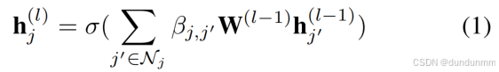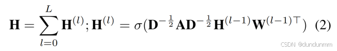 其中,H 为图 G 中所有节点的嵌入矩阵,∣V∣ 表示节点数量,L 为图神经网络的层数;