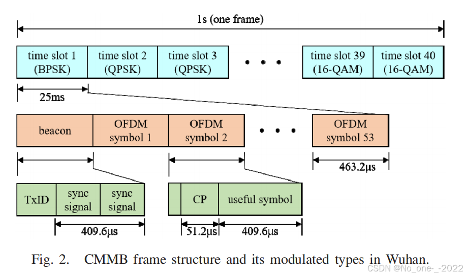 - 一帧 CMMB 信号持续 1 s 1\text{ s} 1 s,包含 40 个时隙。