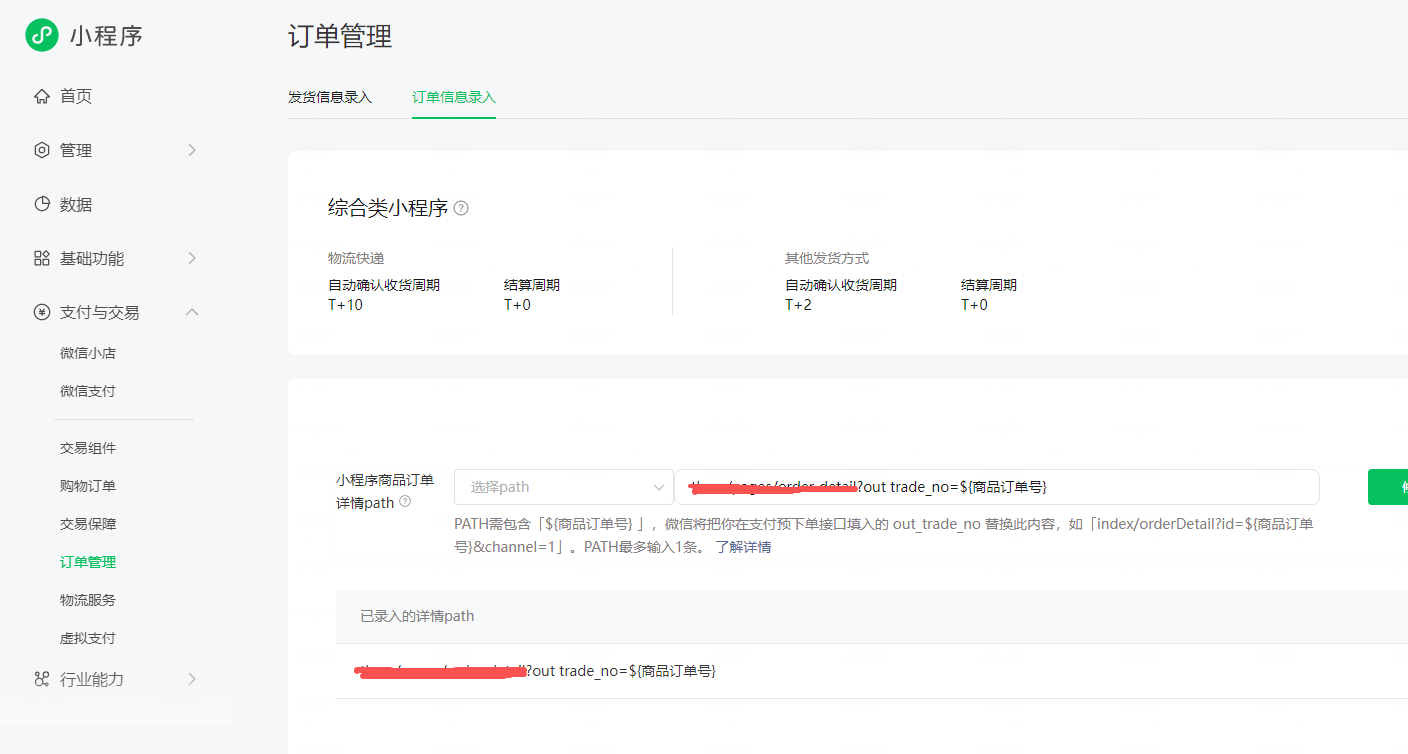 最近在做小程序内商城的项目,需要实际发货。那就要设置订单详情页的路径。看了好多都不行,最后找客服请教才知道是这样设置的。