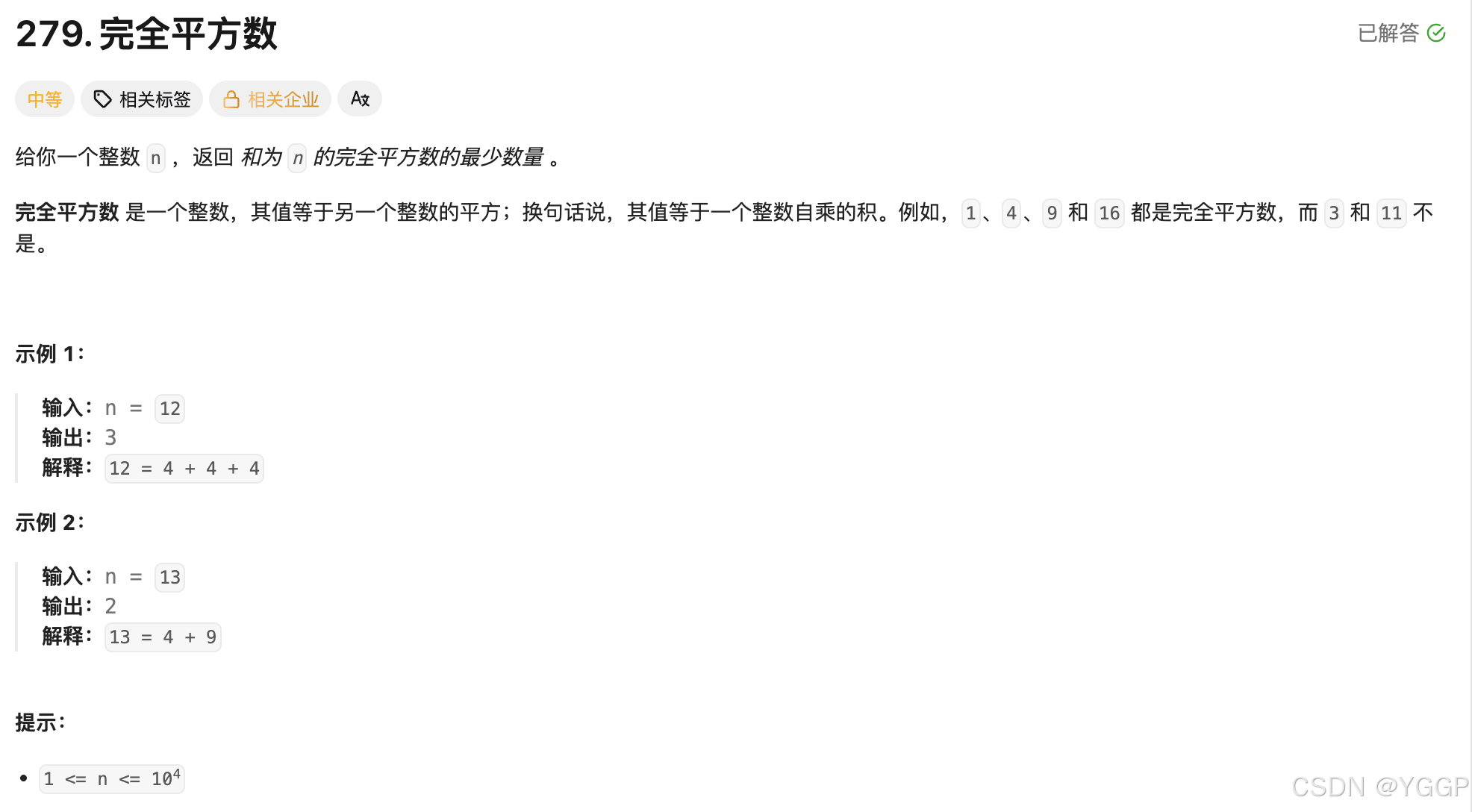 279. 完全平方数