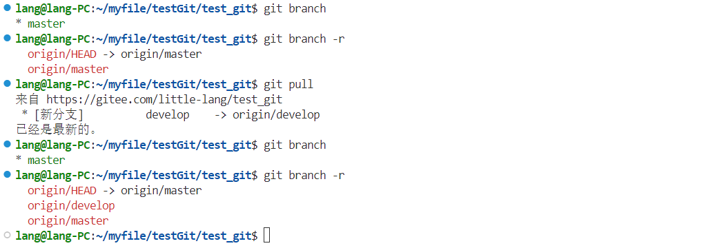 我们可以直接使用上面两种方式切换到远程仓库中的某个分支;