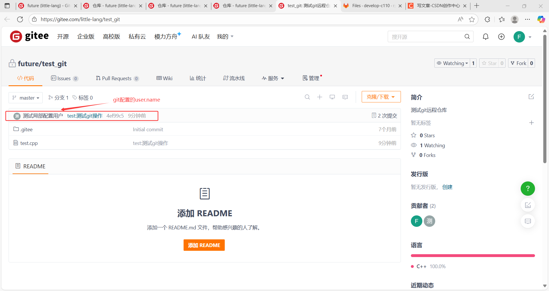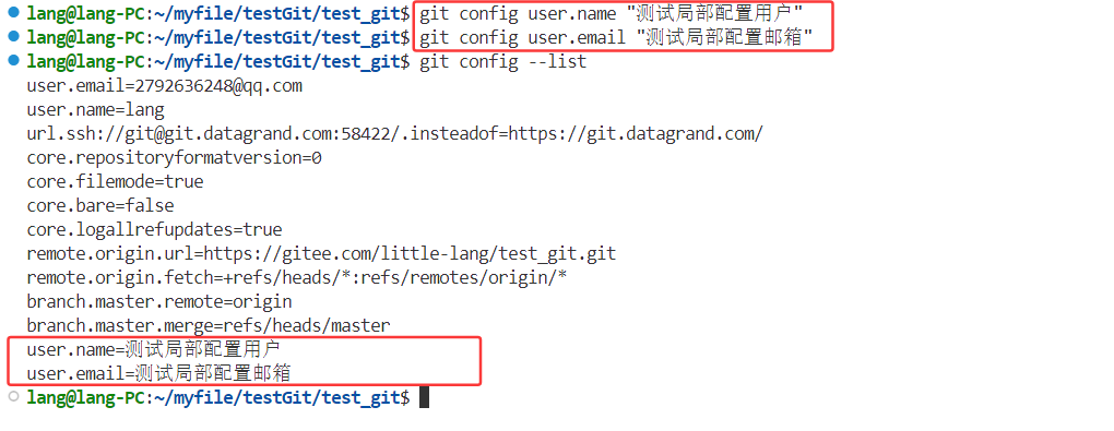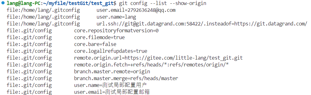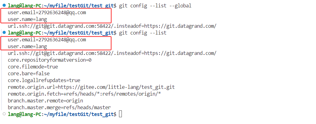 此外还有全局配置,就是加上一个--global选项,将此配置项生效与当前机器的所有git仓库;