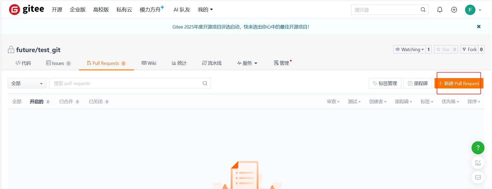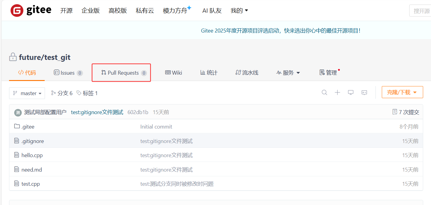 如何发起PR请求,我们可以看下面gitee平台的例子: