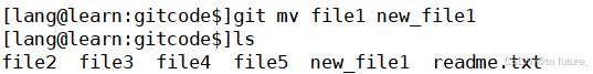 如果想要修改文件的名字,需要使用git自带的命名,不能直接使用mv来修改,直接使用mv命名修改git会认为是删除了原文件创建了新文件;