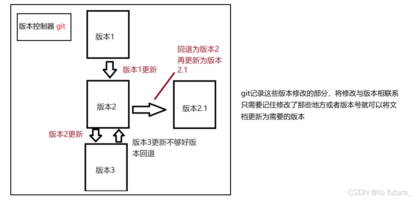 在工作与学习中,我们经常需要进行文档的编写,而一份好的文档是需要不断进行修改的,但如果直接在原文档上修改,那么我们每次修改时都会将原有的文档改变,此时就会面临着如果修改的效果不好想回退修改为原来版本这样是无法进行的;如果想做到对版本的控制(回退,修改),那么就需要我们进行一些操作(记录修改与修改的版本等),而版本控制器就是这样一个操作的工具,git就是这样一个版本控制器;