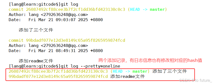 我们成功添加好文档之后,我们结合上面的本地仓库结构,再来查看一下这个本地仓库中的内容: