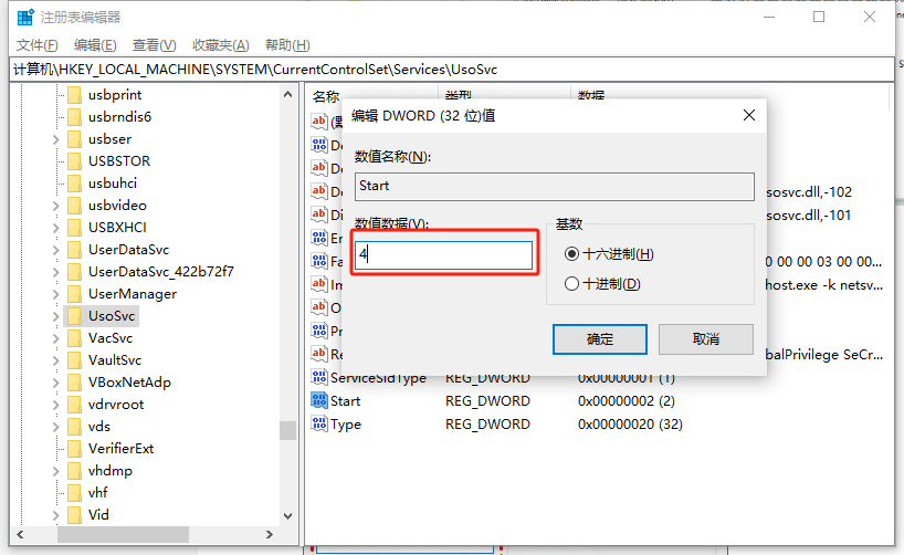 ++step03.++ 在弹出的窗口中将**"数值数据"** 改为**"4"** ,并单击**"确定"**。
