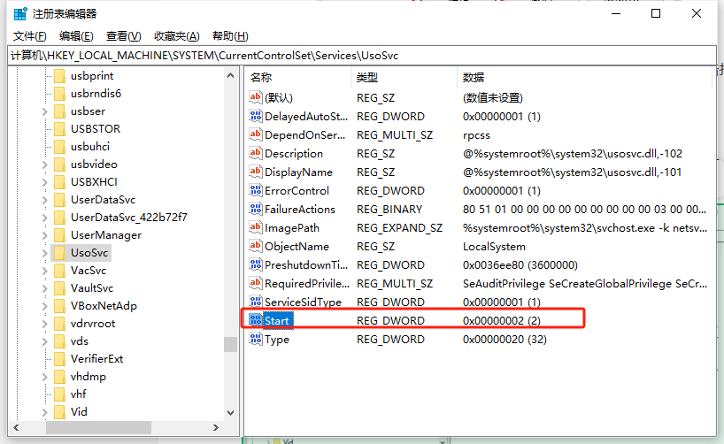HKEY_LOCAL_MACHINE\SYSTEM\CurrentControlSet\Services\UsoSvc