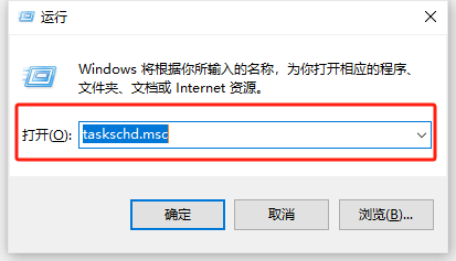 ++step01.++ 按**"Windows + R"** 键,打开运行对话框,并输入**"taskschd.msc"** ,然后再单击**"确定"**。