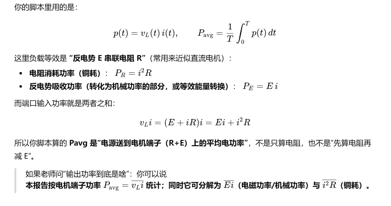 p = vrec .* i; % cond区间 vrec=vL,所以这样写也成立 Pavg = mean(p);