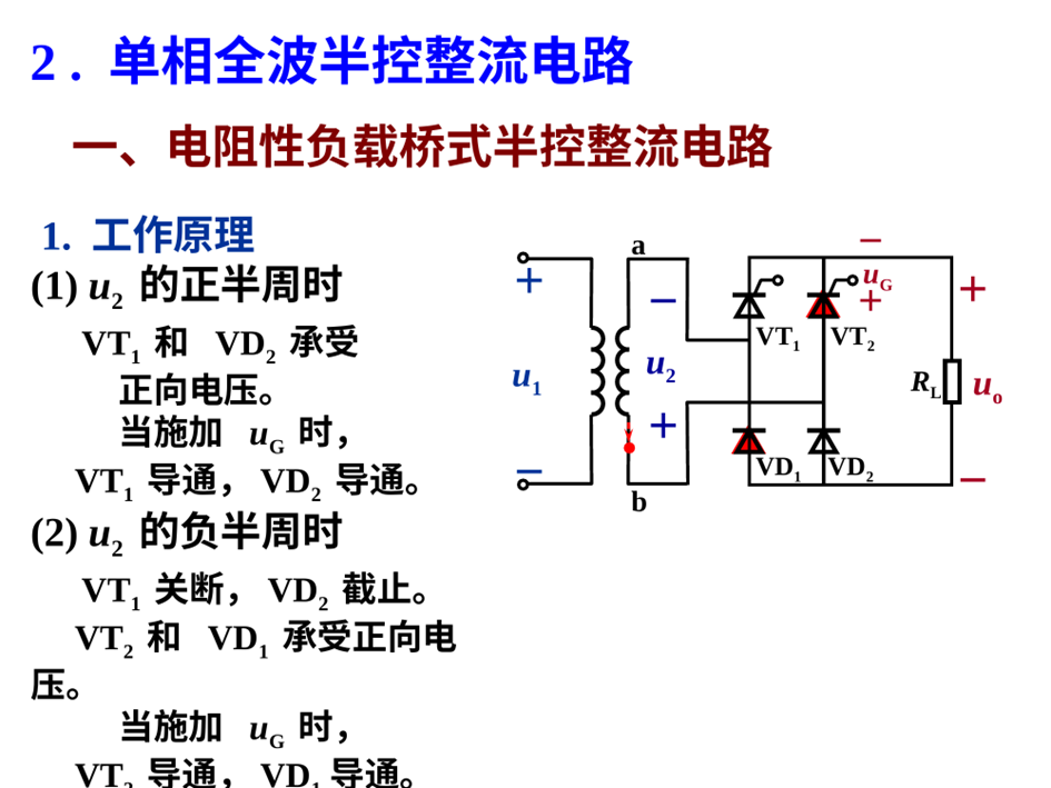 1)掌握单相双半波(全波输出型)可控整流的主电路结构与工作过程;