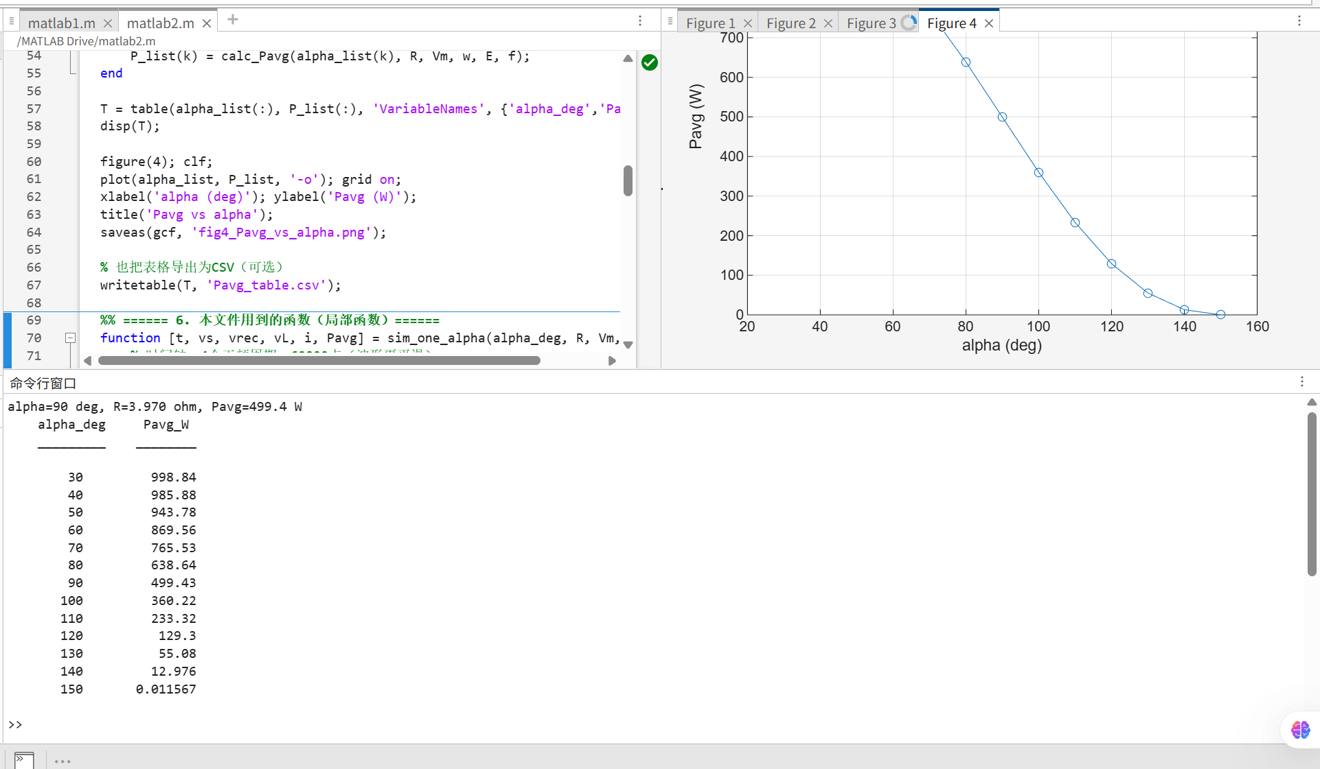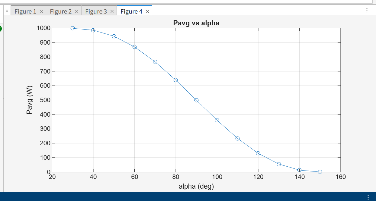 fprintf("alpha=%g deg, R=%.3f ohm, Pavg=%.1f W\n", alpha_deg, R, Pavg);