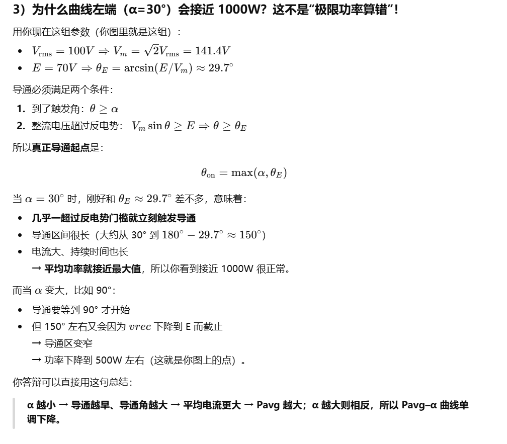 % 题目:交流100V/50Hz,P≈500W,移相范围30°~150°,反电势E=70V