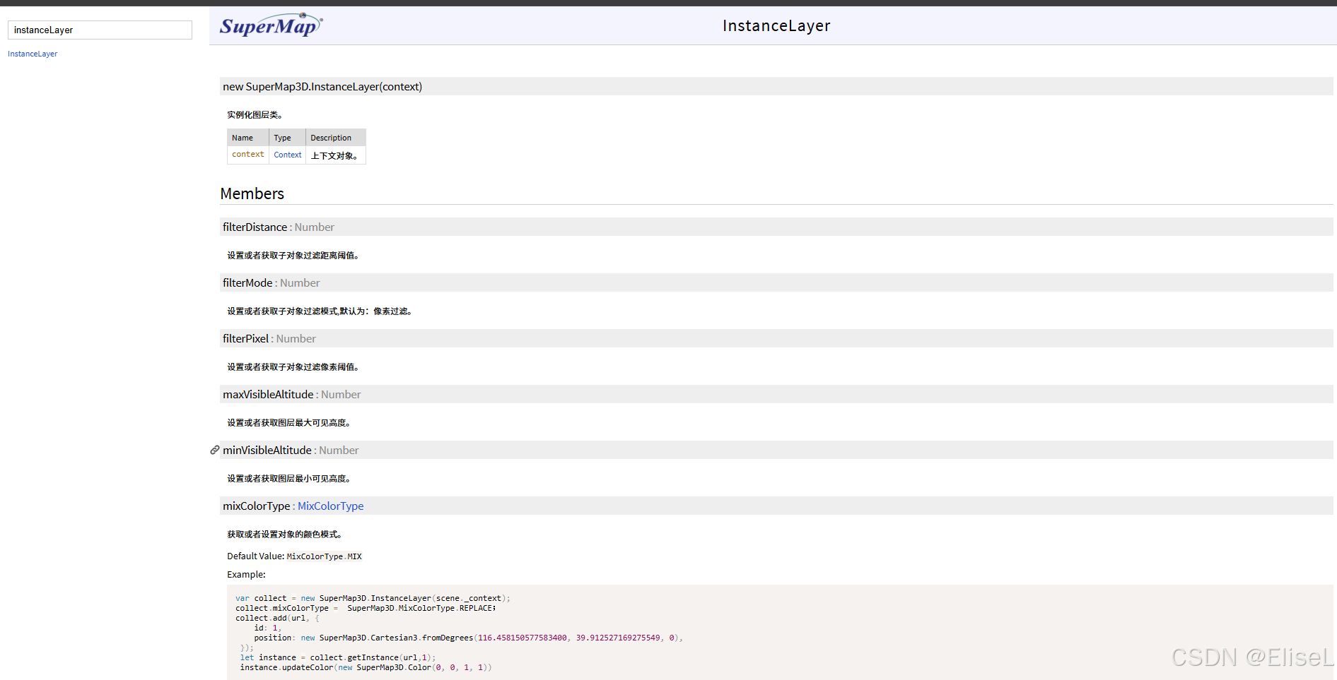 SuperMap iClient3D for WebGL中主要使用接口InstanceLayer实例化图层,具体接口方法说明详见: