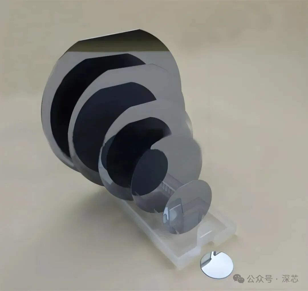 首先,如前所述,从硅熔体中拉出的单晶是圆柱形的,因此切割后形成圆盘。