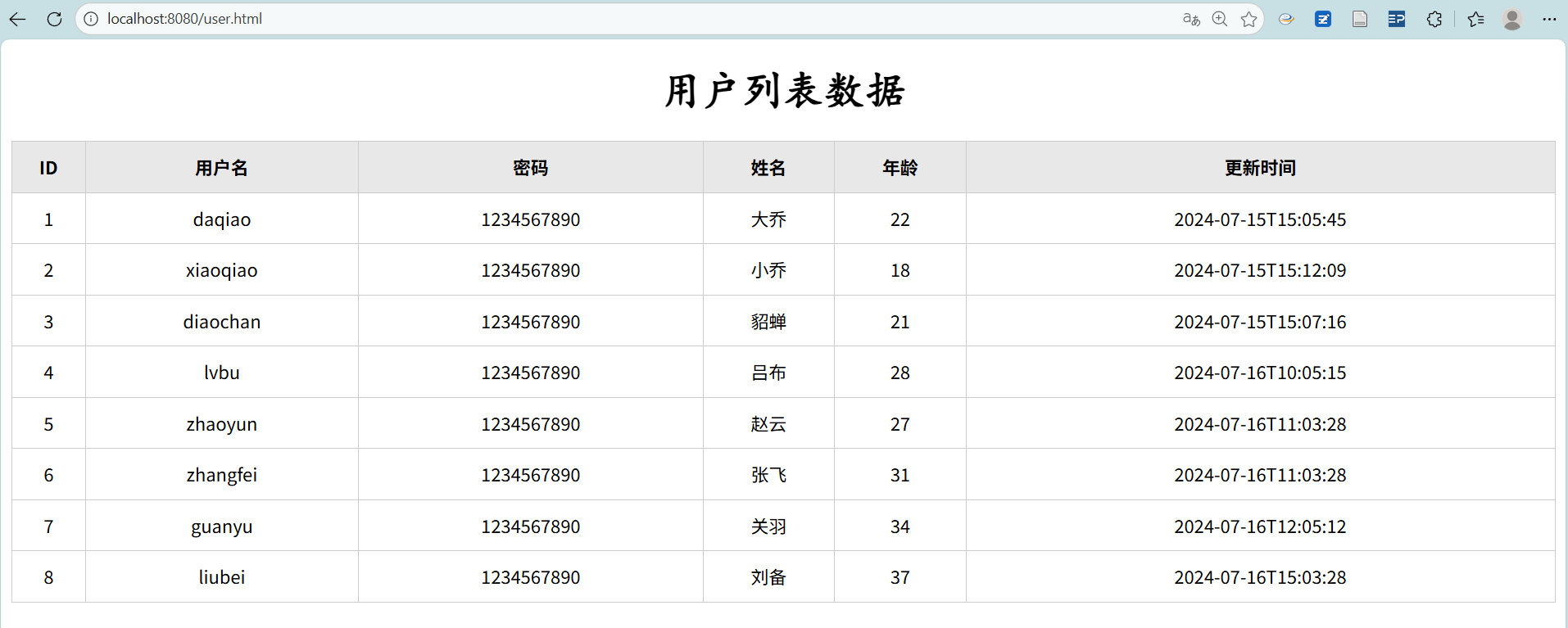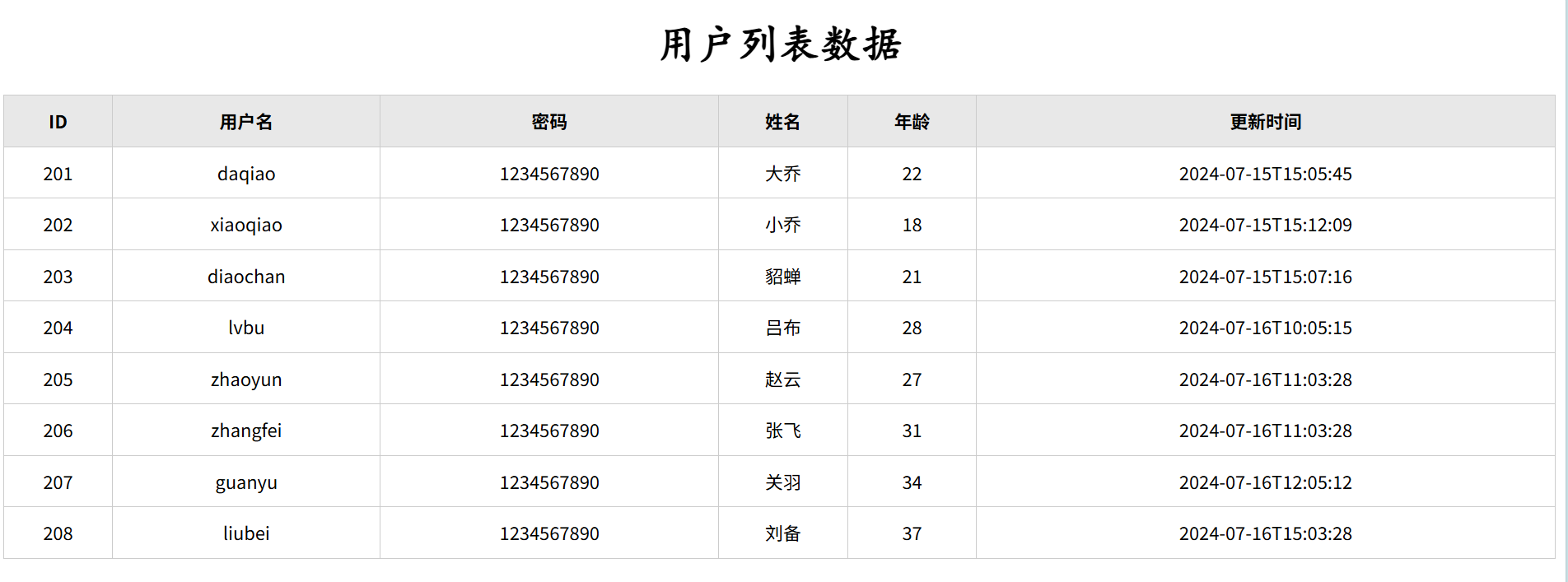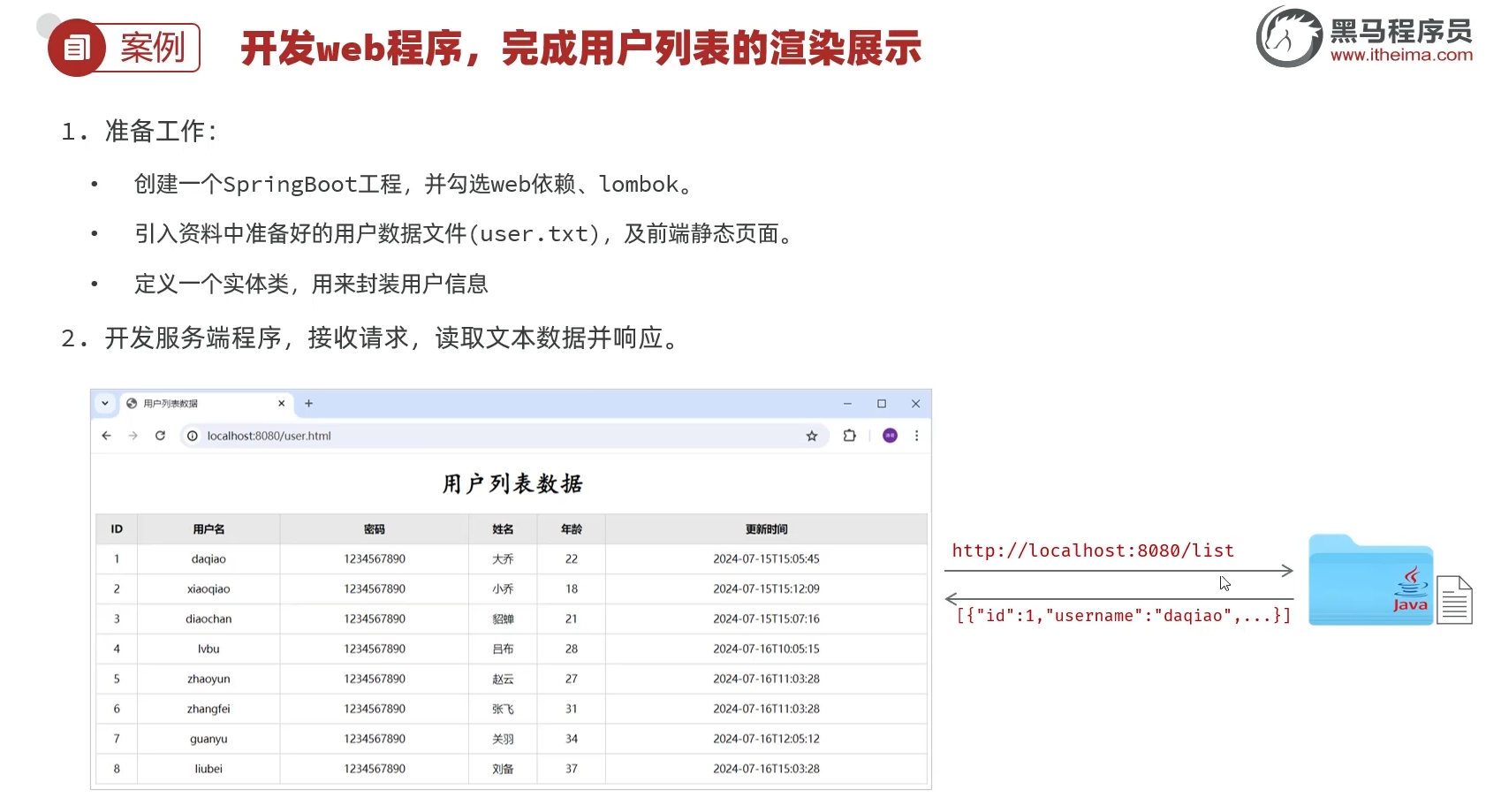 - return返回的是前端ajax请求所需要的数据,因为有RestController注解,所以响应给前端的数据就会自动变成json格式给前端。