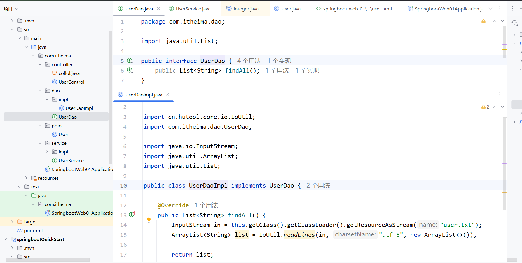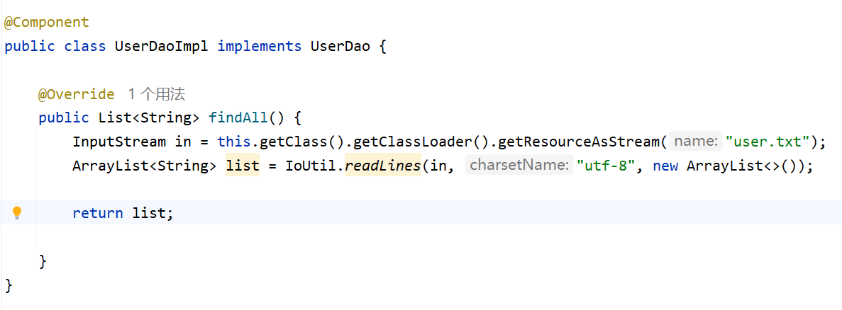 //1.要先把user.txt的文档数据给读取到一个集合当中list