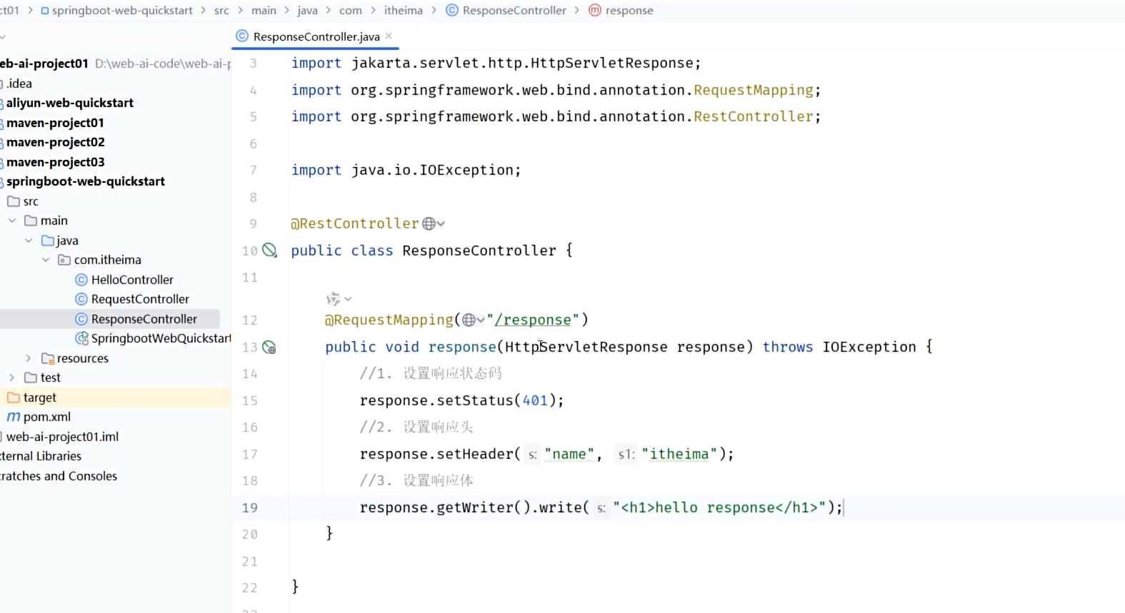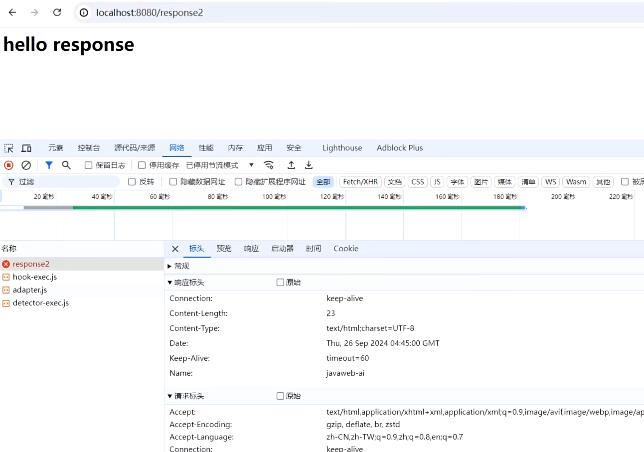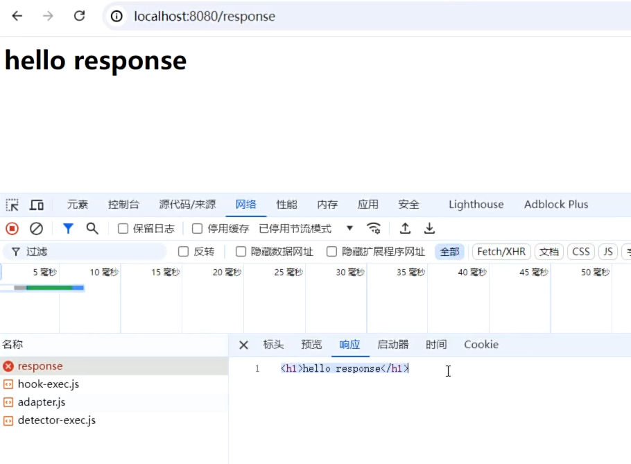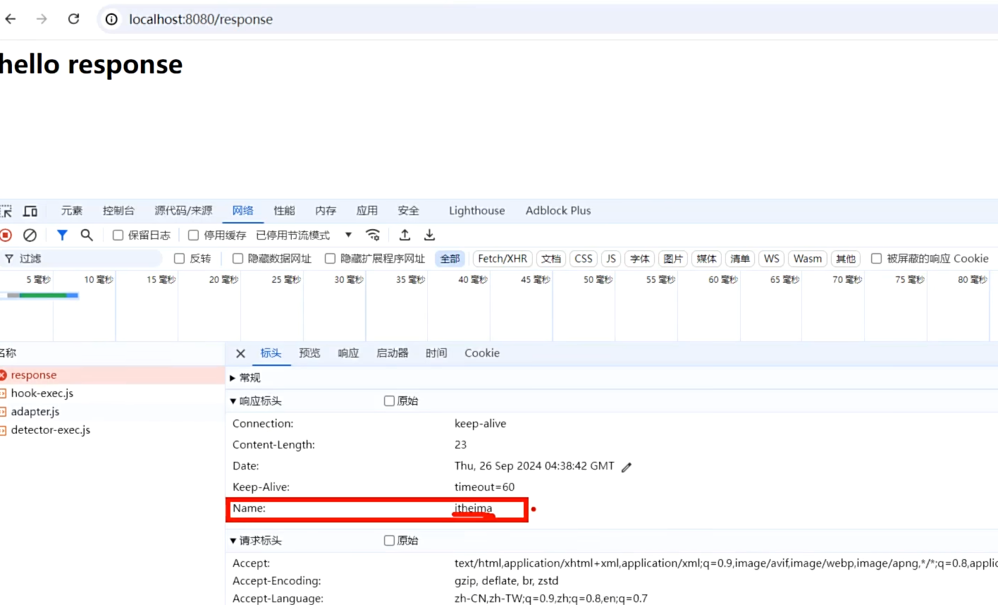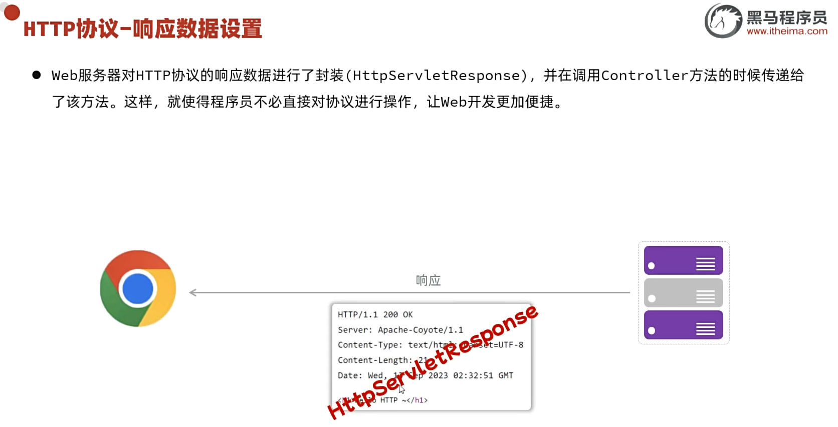 **理解:**响应数据是自己写的,因为我们现在写的代码就是web服务器里面要存储的资源,我们现在就是服务器,在浏览器上访问对应网址,返回什么内容,由我们写的getwrite.write()方法来实现。