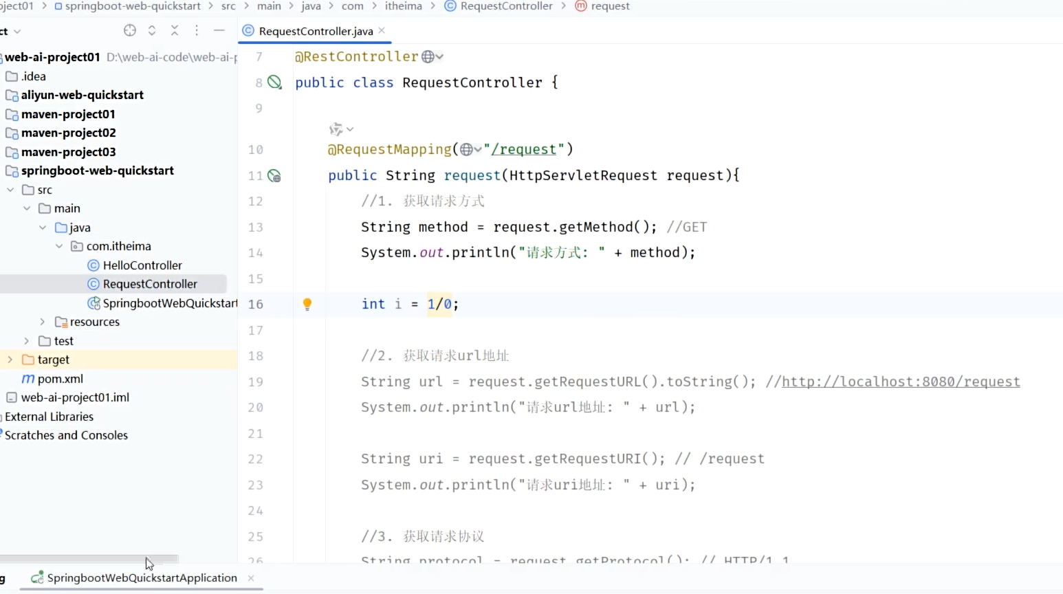 **问题:****两个请求处理类的请求地址一样,如果运行启动类了,会不会两个类的方法都运行?**比如及获取请求数据、简单的hello案例?
