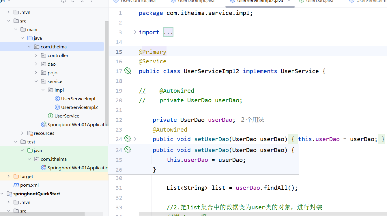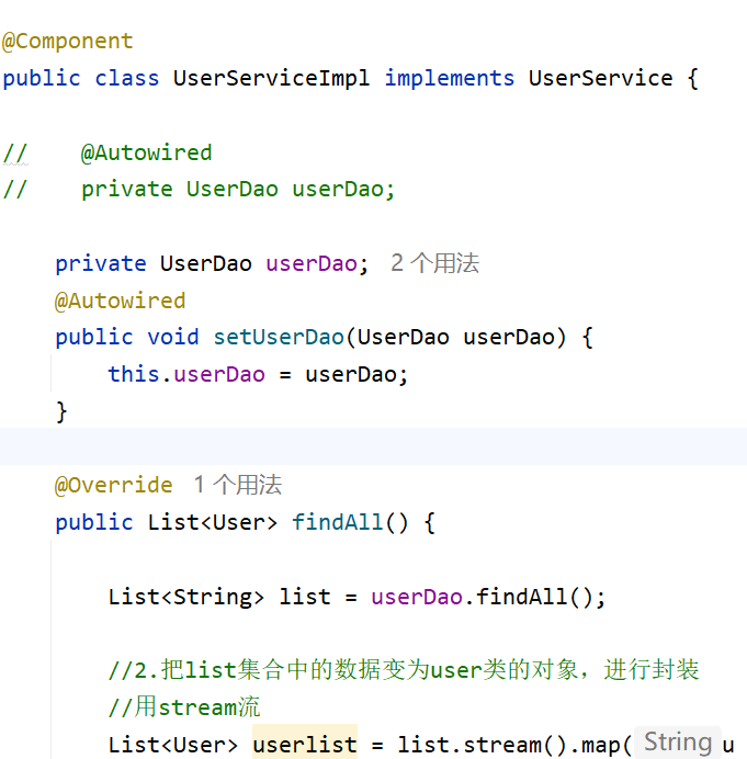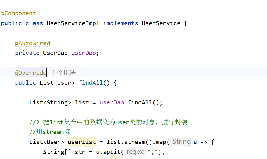 UserDaoImpl类 和 UserServiceImpl类 上面加一个注解@component