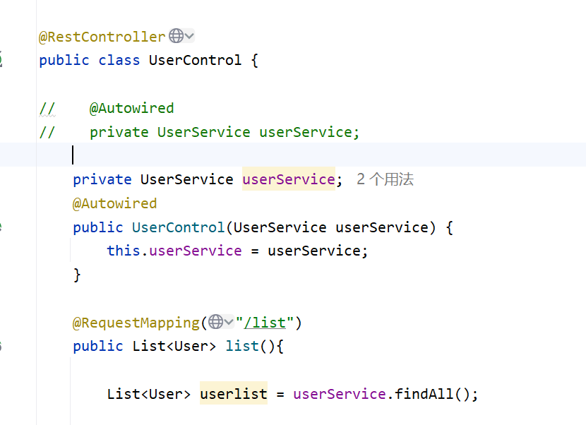 - 控制层的@resControl注解已经包含了@Controller注解,不用再写了。