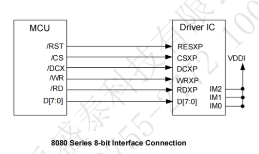 ST77926并行方式对应8080时序 :CS、D/C、WR、RD、DB[7:0]
