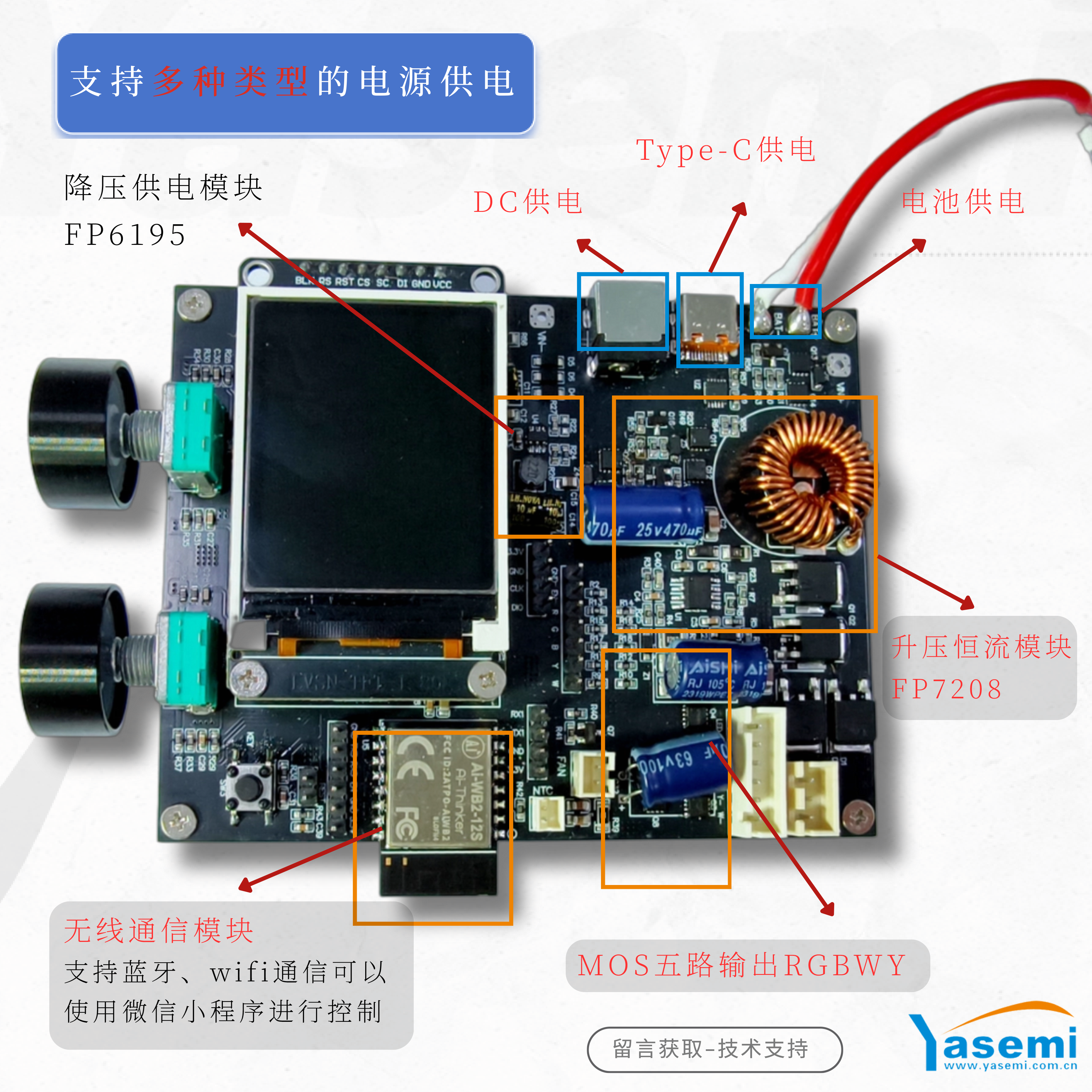 综上所述,RGBWY五路光色系统通过独立光谱设计、高精度驱动与智能算法,从根源解决了传统RGB方案白光不纯、彩光暗淡的问题。该方案现已应用于商业照明、展览展示、家居氛围及影视制作等场景,为高品质光色需求提供了可靠的技术保障。 如果您有进一步的技术探讨或方案定制需求,欢迎随时联系我们雅欣工程师团队~