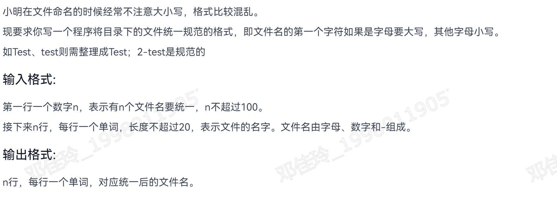统一文件名格式:所有字母先转小写,再将首字母(若为字母)转大写。